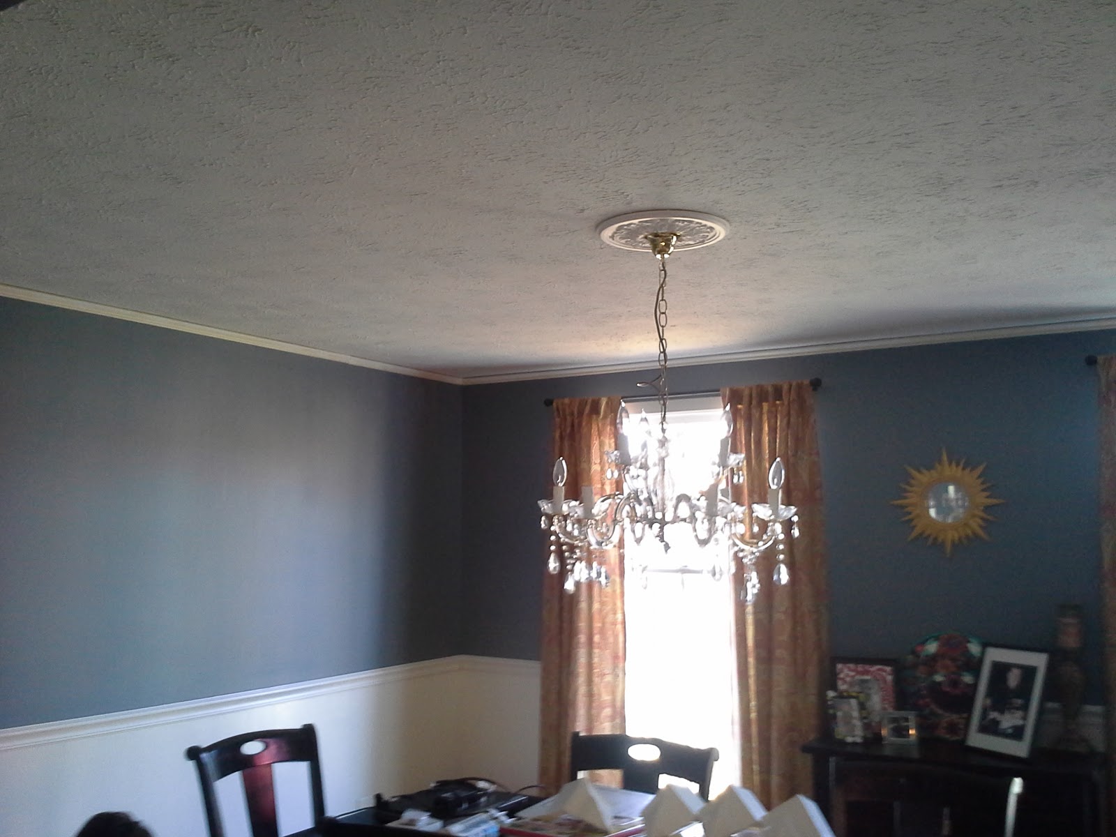 Here it is all hung up! It's dark outside so our fabric blinds are already drawn for the night, but I'll try to post some pictures in the daylight tomorrow.